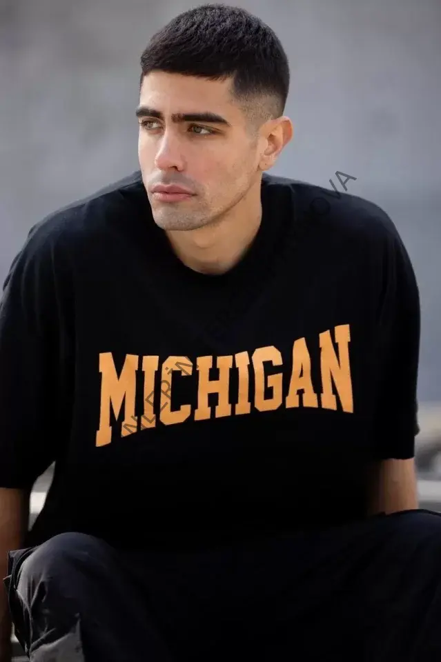 Unisex Bisiklet Yaka Baskılı Oversize T-Shirt - Siyah 117950