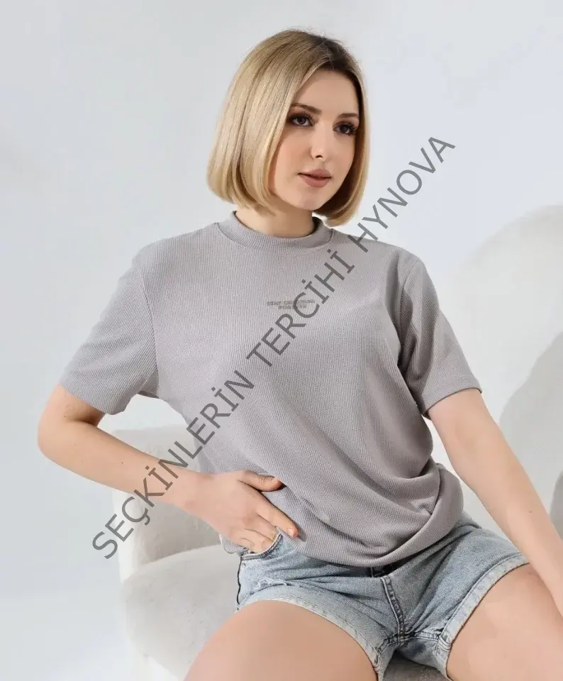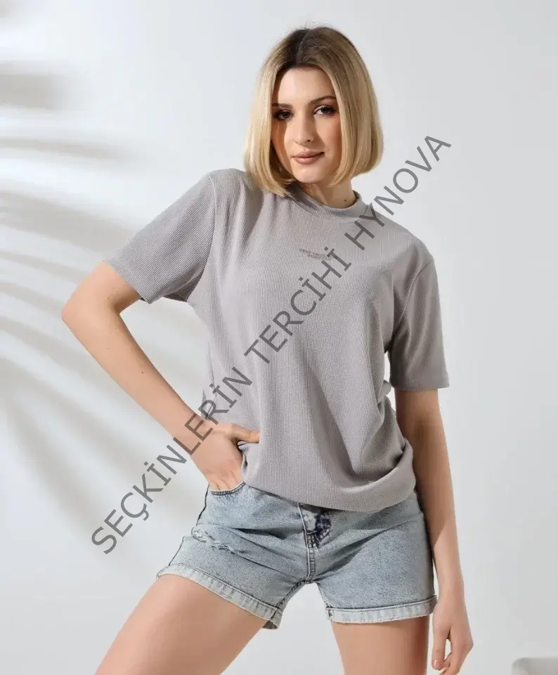 Unisex Bisiklet Yaka Baskılı Slim Fit T-Shirt - Boyalı Gri 101472