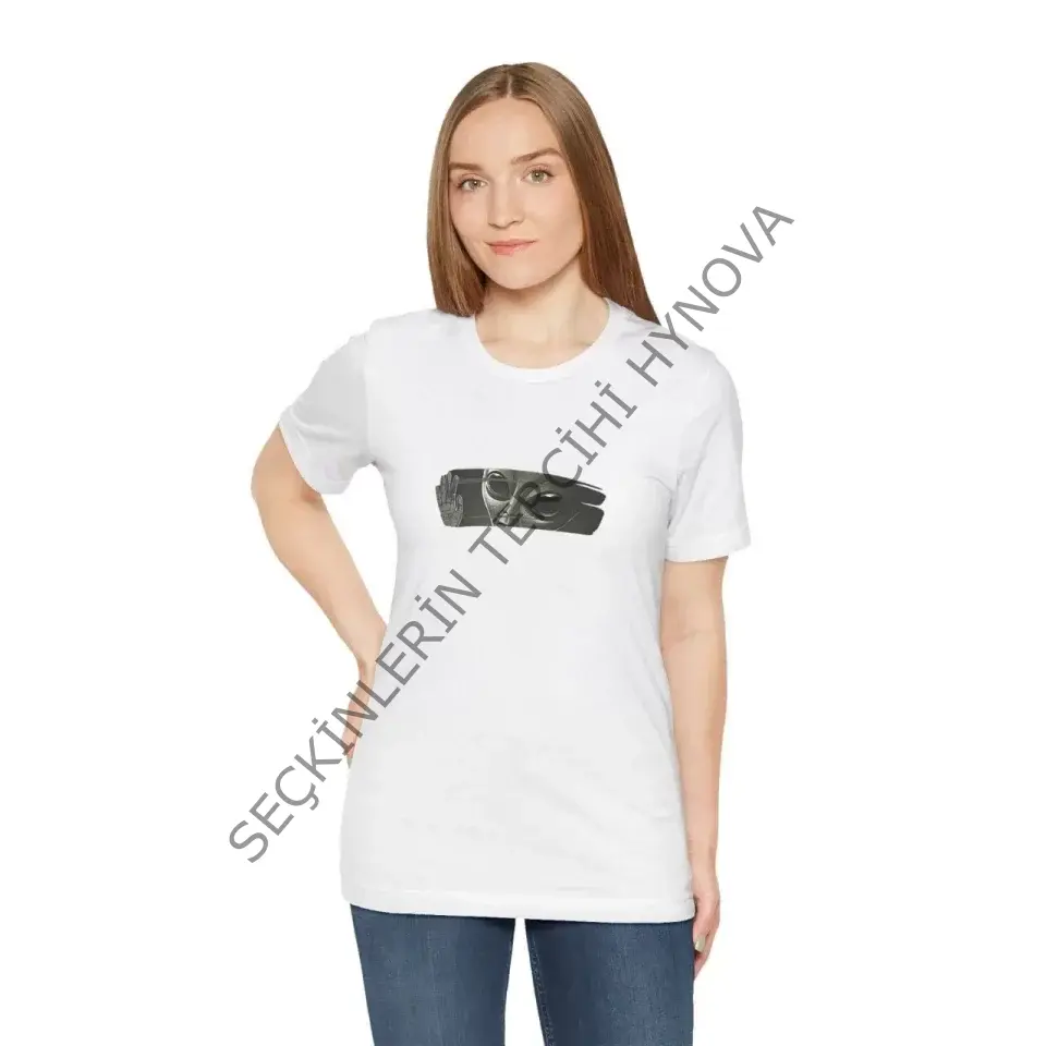 Unisex Bisiklet Yaka Baskılı T-Shirt - Beyaz