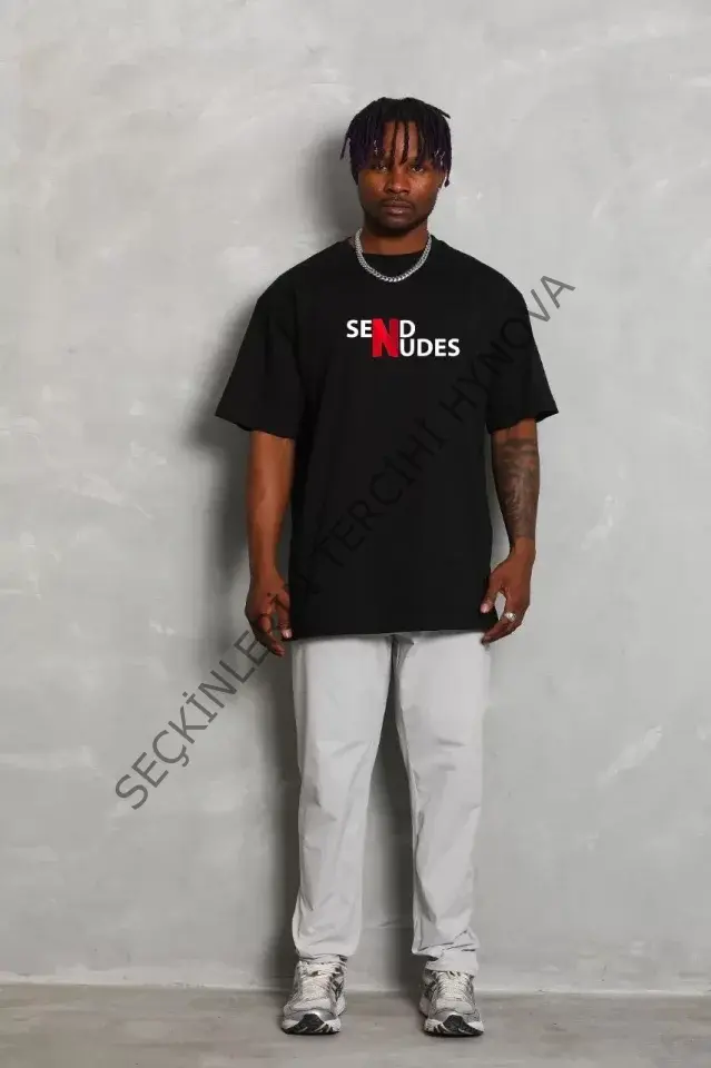 Unisex Bisiklet Yaka Double Oversize Baskılı T-Shirt - Siyah