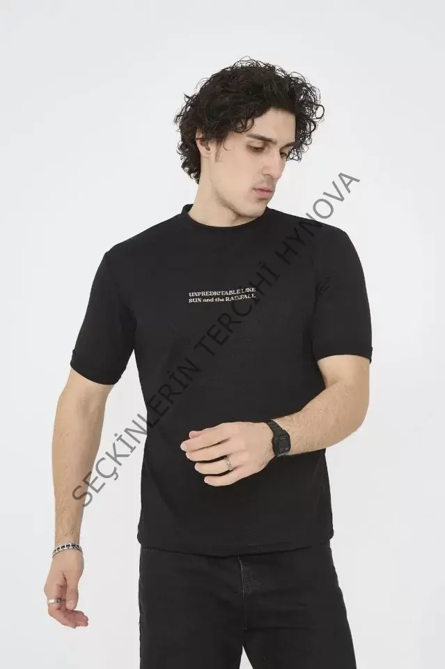 Unisex Bisiklet Yaka Slim Fit T-Shirt- Siyah