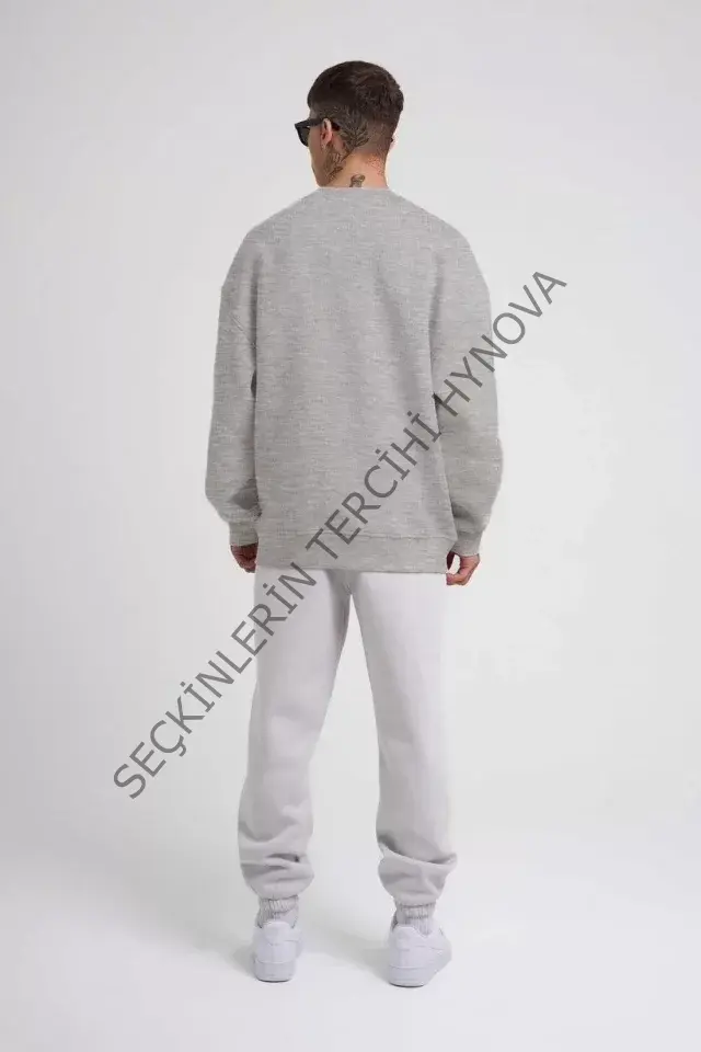 Unisex Biskilet Yaka Üç İplik SweatShirt - Gri