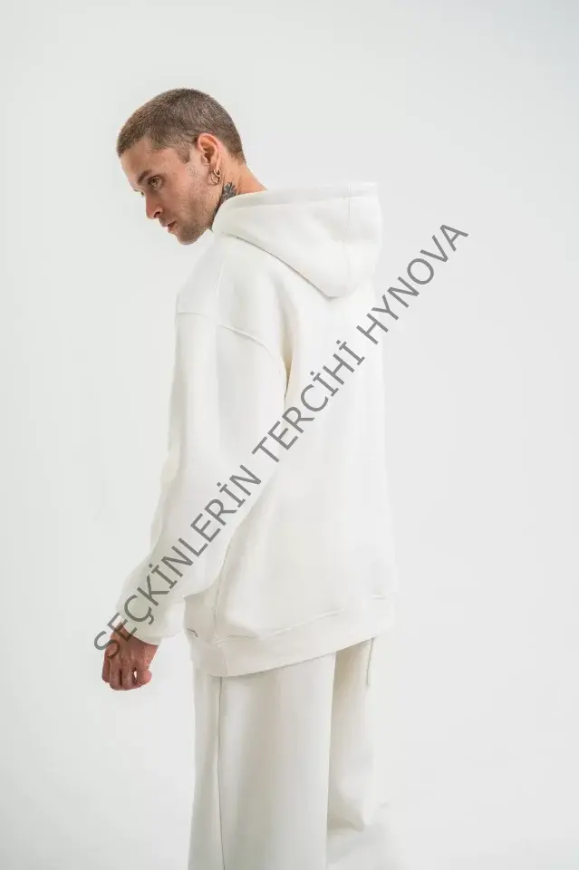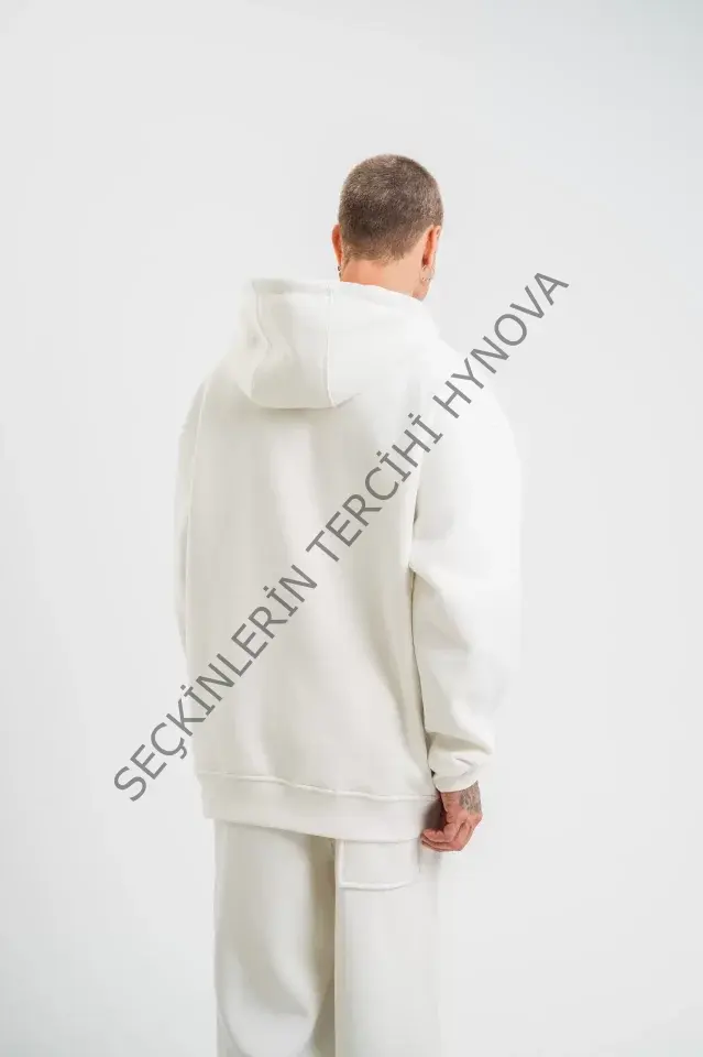 Unisex Double Oversize Kapşonlu Basic SweatShirt - Beyaz