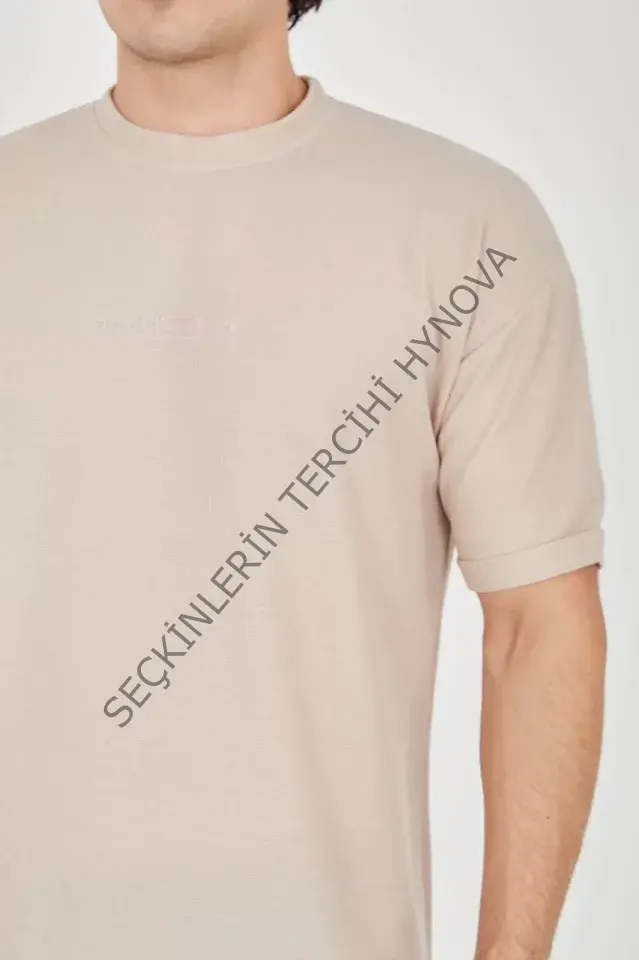 Unisex Jakar Kumaş Rahat Kol T-Shirt - Bej