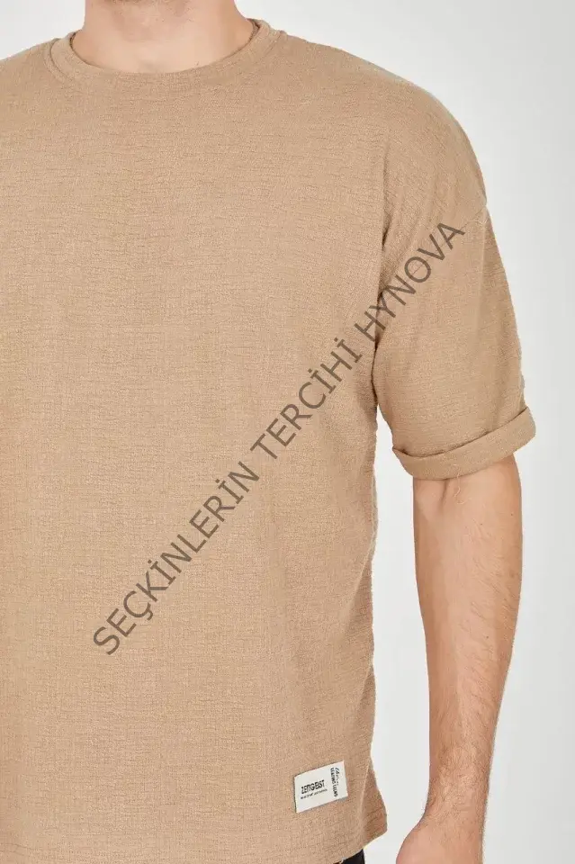 Unisex Jakar Kumaş Rahat Kol T-Shirt - Kahverengi