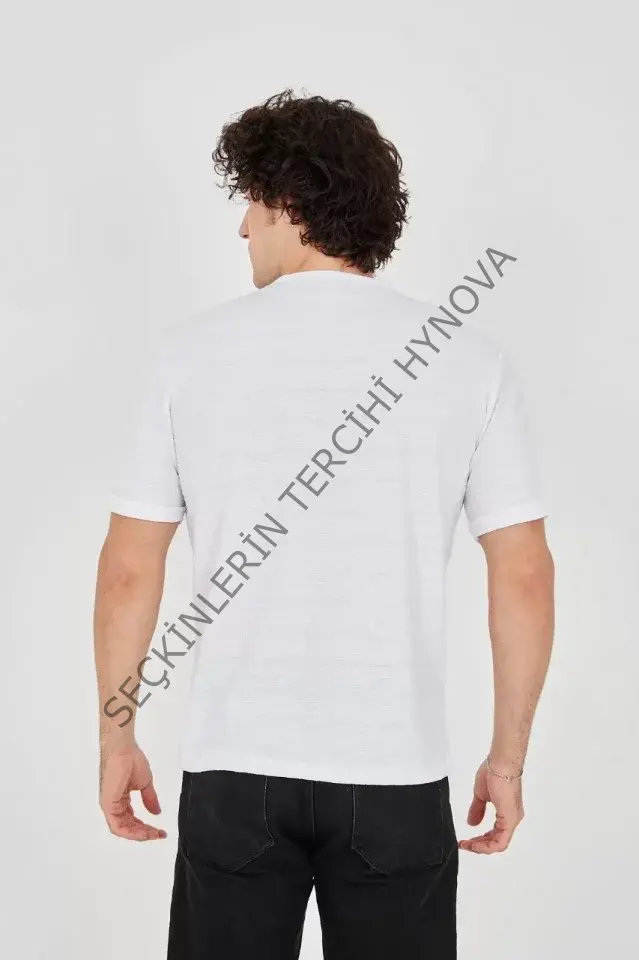 Unisex Jakar Kumaş Slim Fit T-Shirt - Beyaz