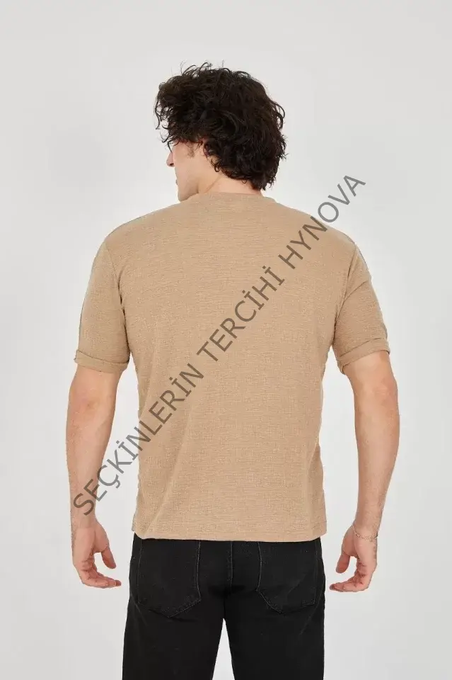 Unisex Jakar Kumaş Slim Fit T-Shirt - Kahverengi