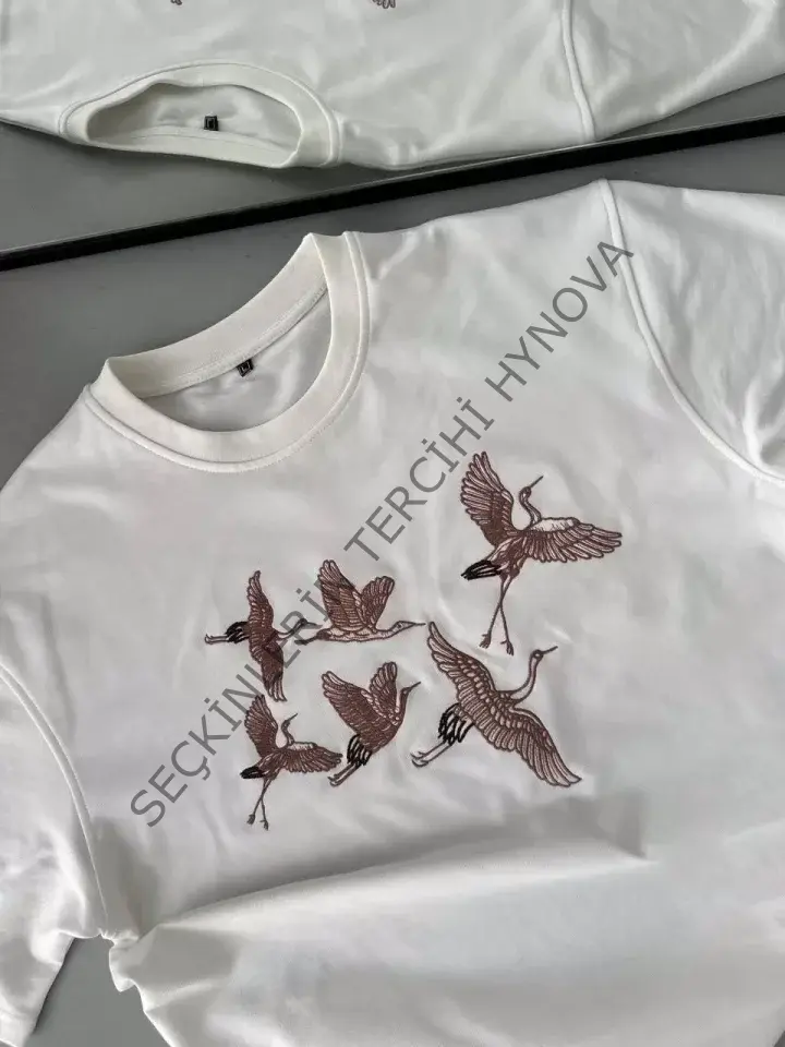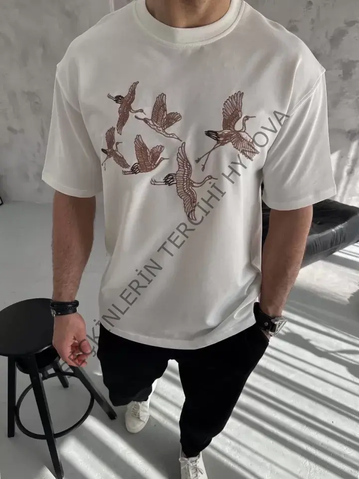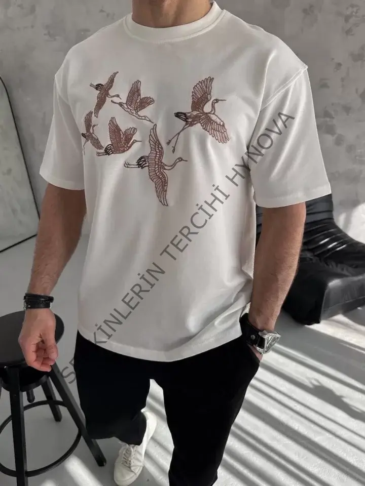 Unisex Nakış İşlemeli T-Shirt - Beyaz