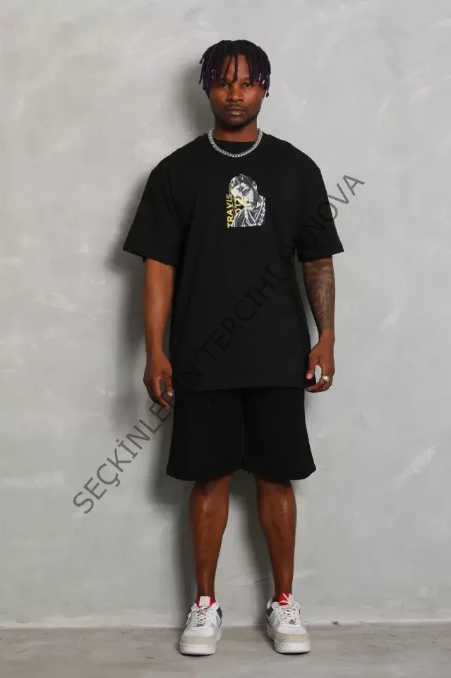 Unisex Oversize Baskılı Bisiklet Yaka T-Shirt - Siyah 93243