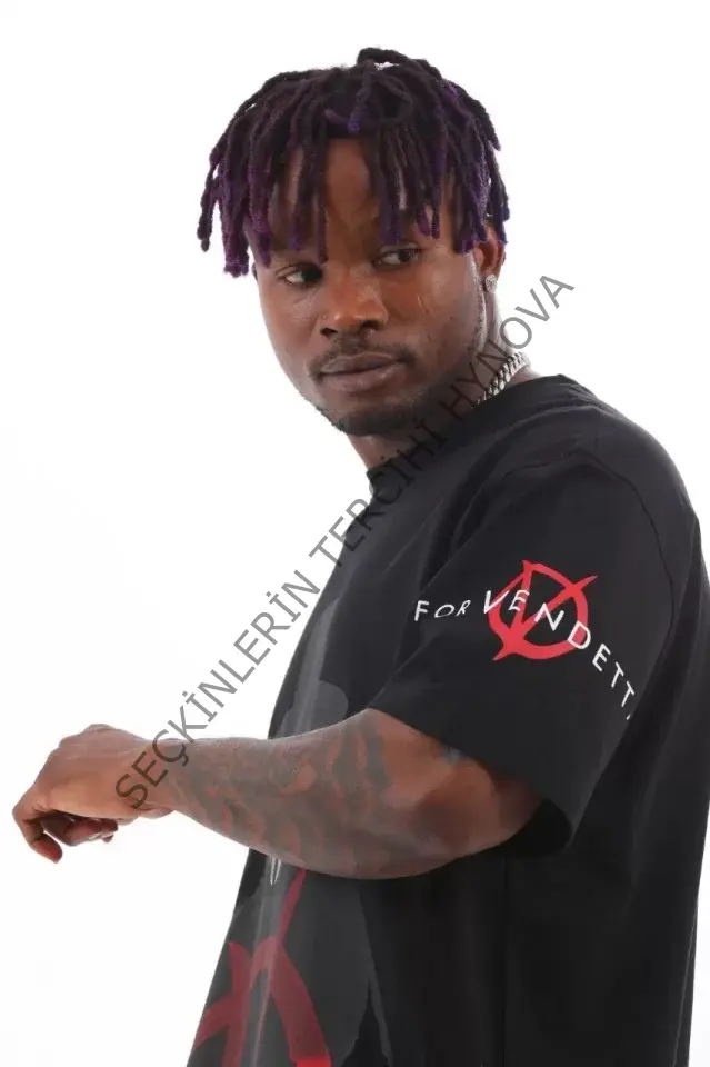 Unisex Oversize Baskılı Bisiklet Yaka T-Shirt - Siyah 93521