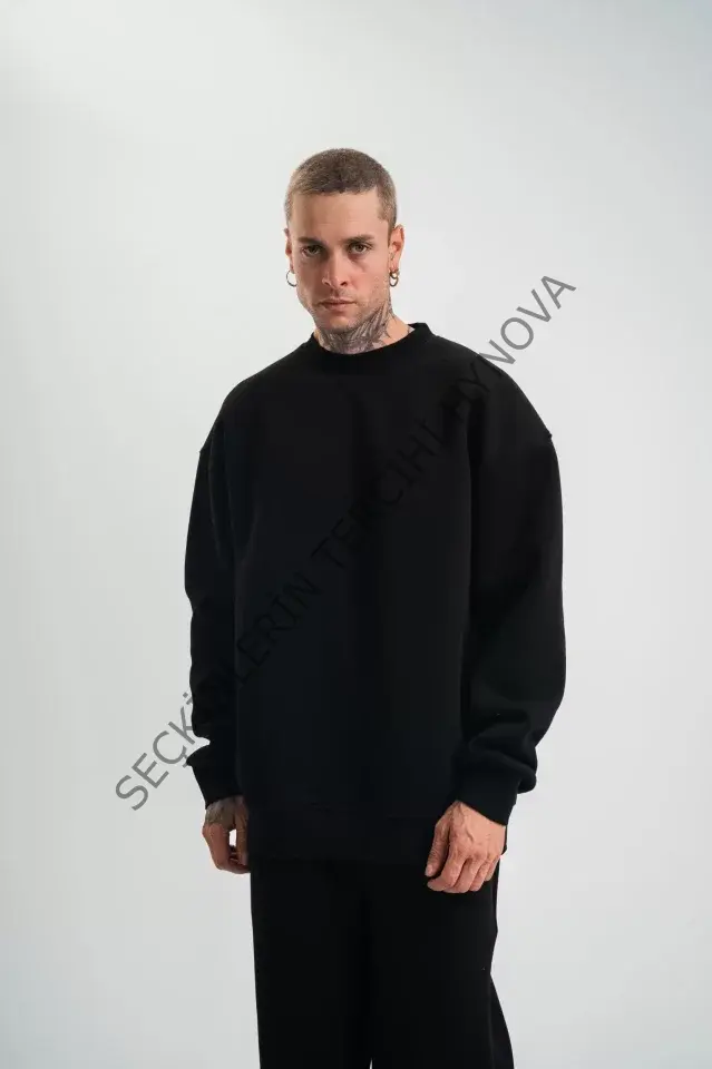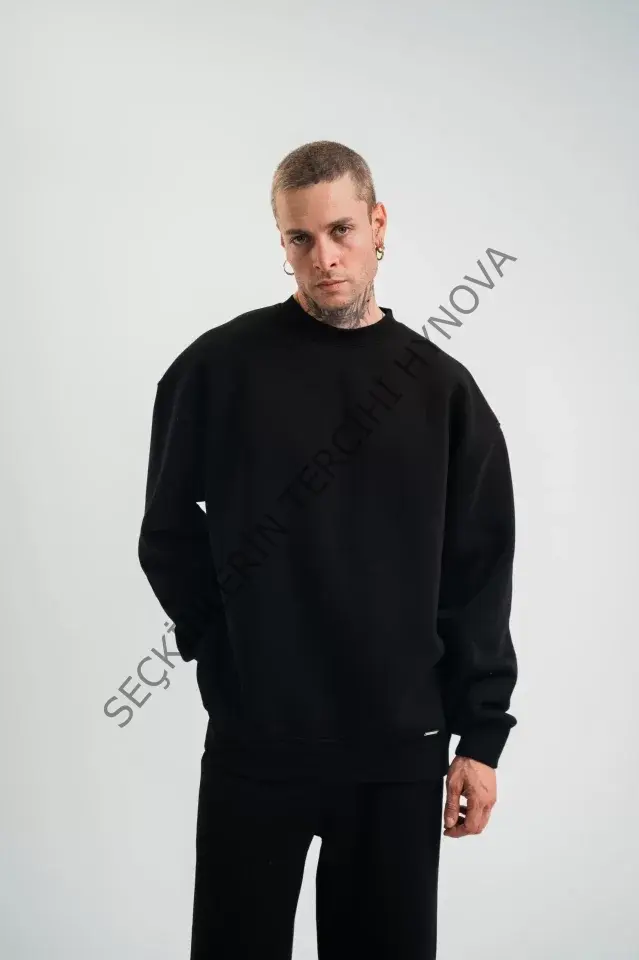 Uzun Kol Bisiklet Yaka Basic SweatShirt - Siyah