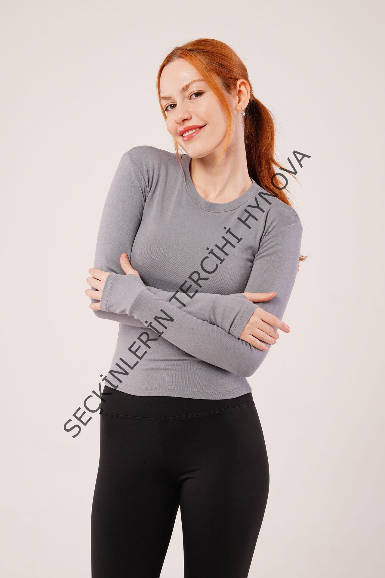 Uzun Kollu Basic Gri Bluz