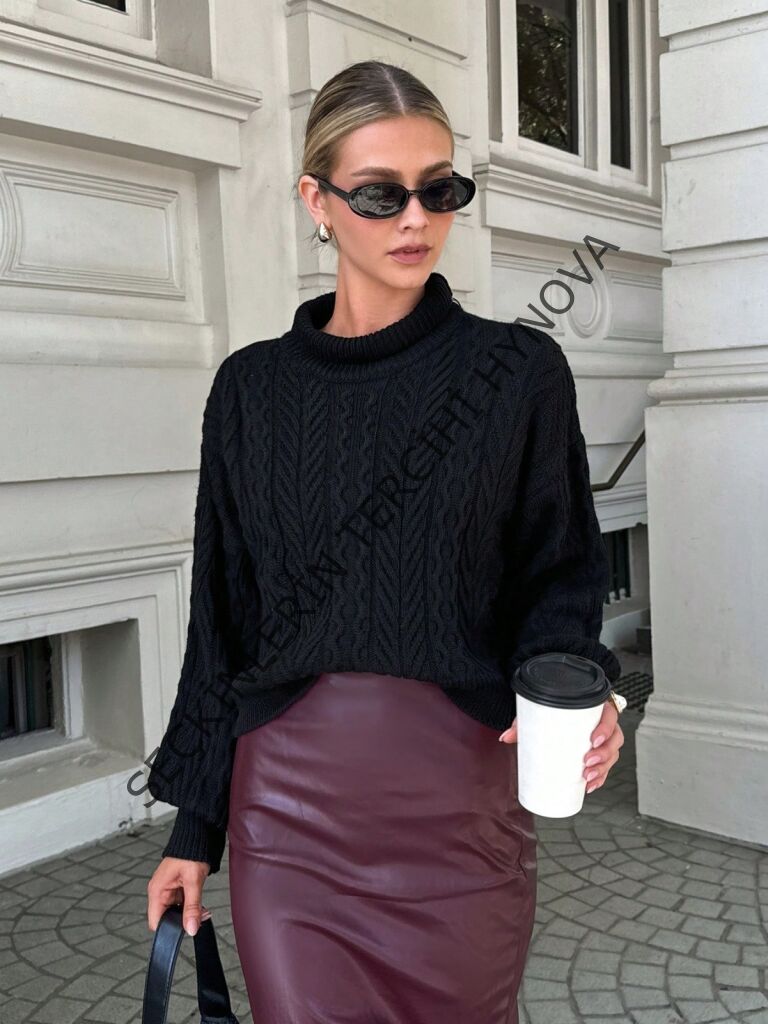 Uzun Kollu Yarı Balıkçı Yaka Triko Bluz