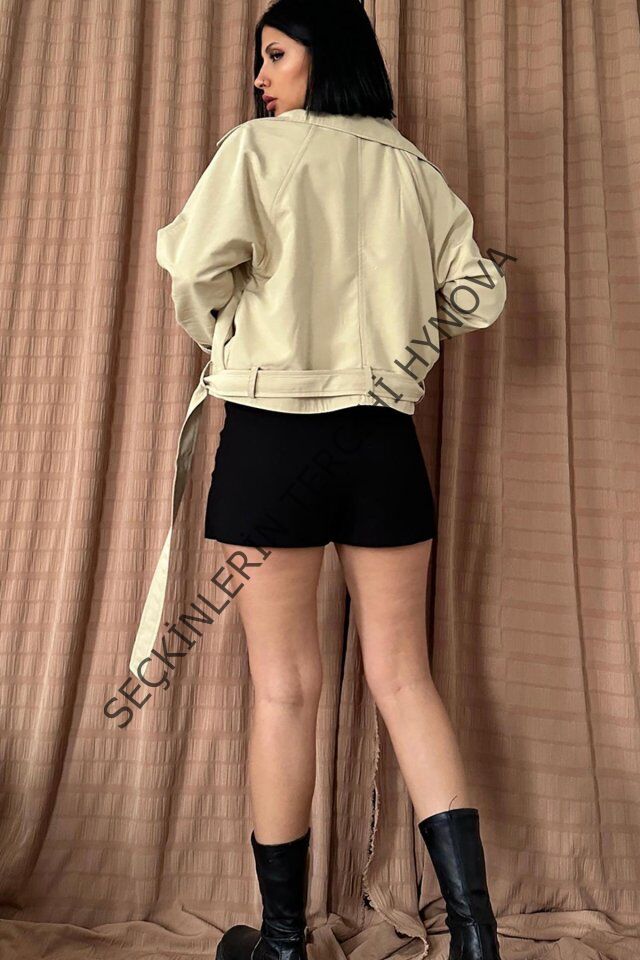 Vizon Kemerli Kısa Trech Ceket