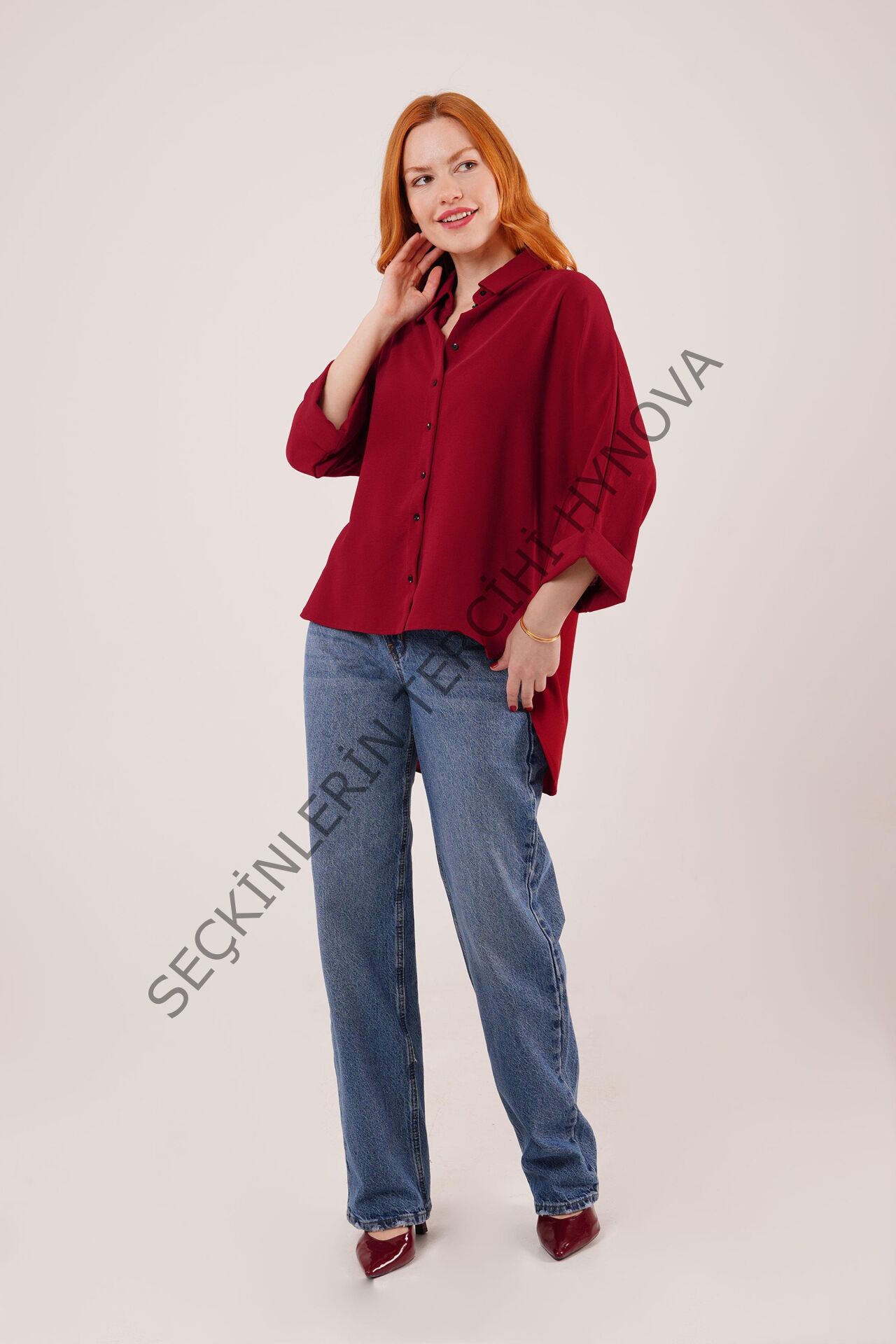 Yarasa Kol Rahat Kalıp Bordo Gömlek