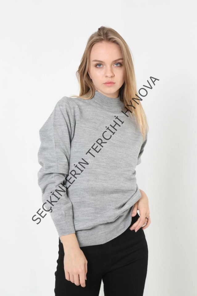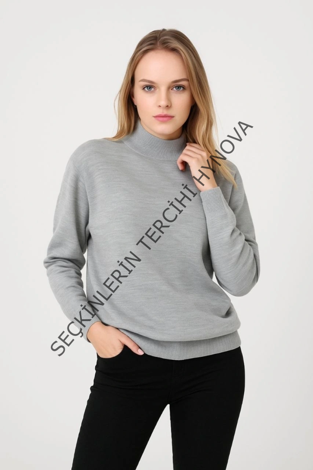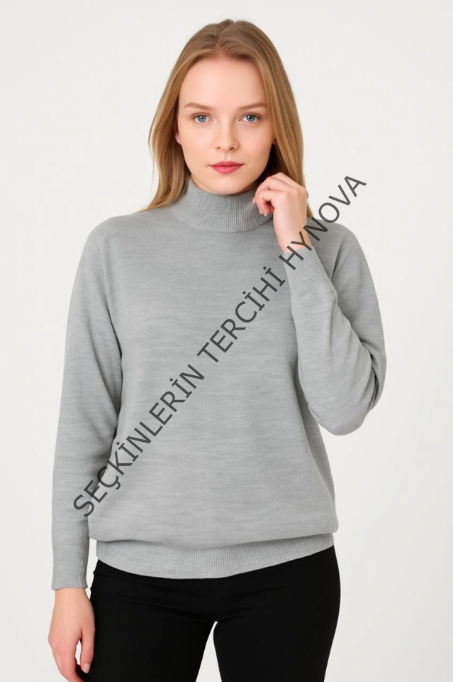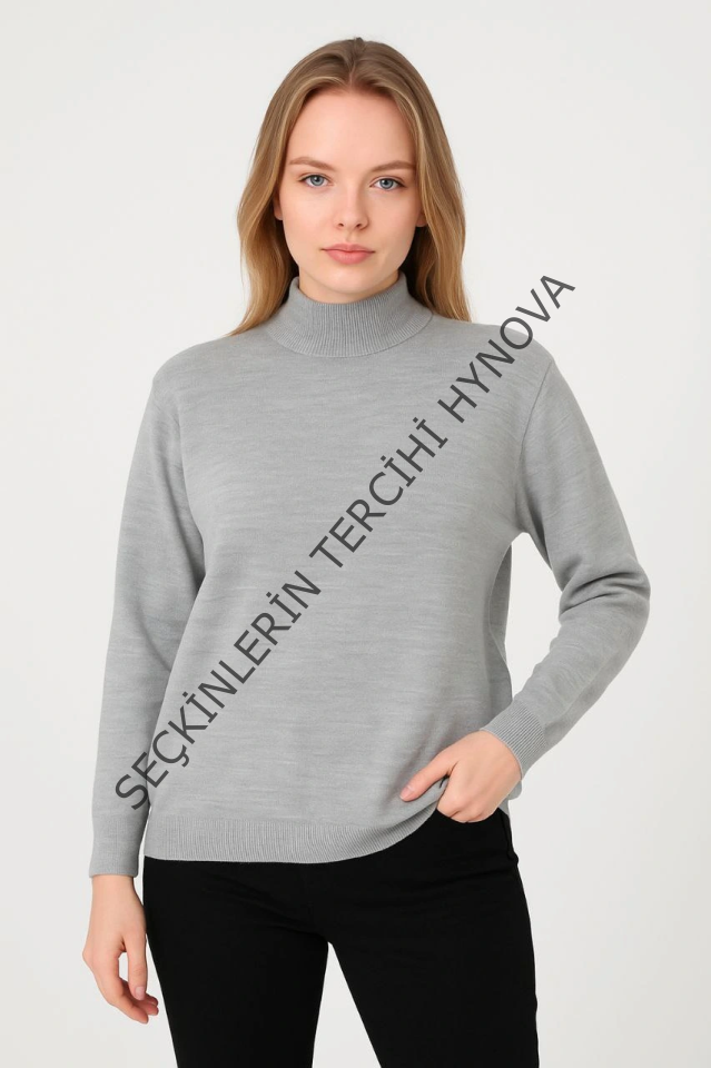 Yarım Boğaz Triko Kazak Yumuşak Dokulu Pamuklu Ince Dokuma, Uzun Kollu Rahat Regular Kalıp - Gri