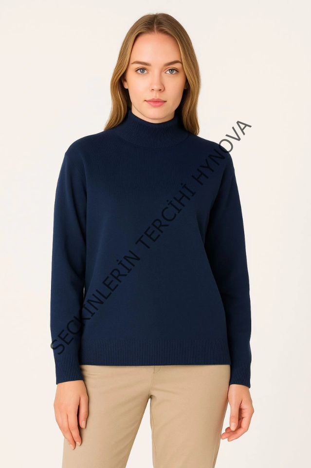 Yarım Boğaz Triko Kazak Yumuşak Dokulu Pamuklu Ince Dokuma, Uzun Kollu Rahat Regular Kalıp - Lacivert