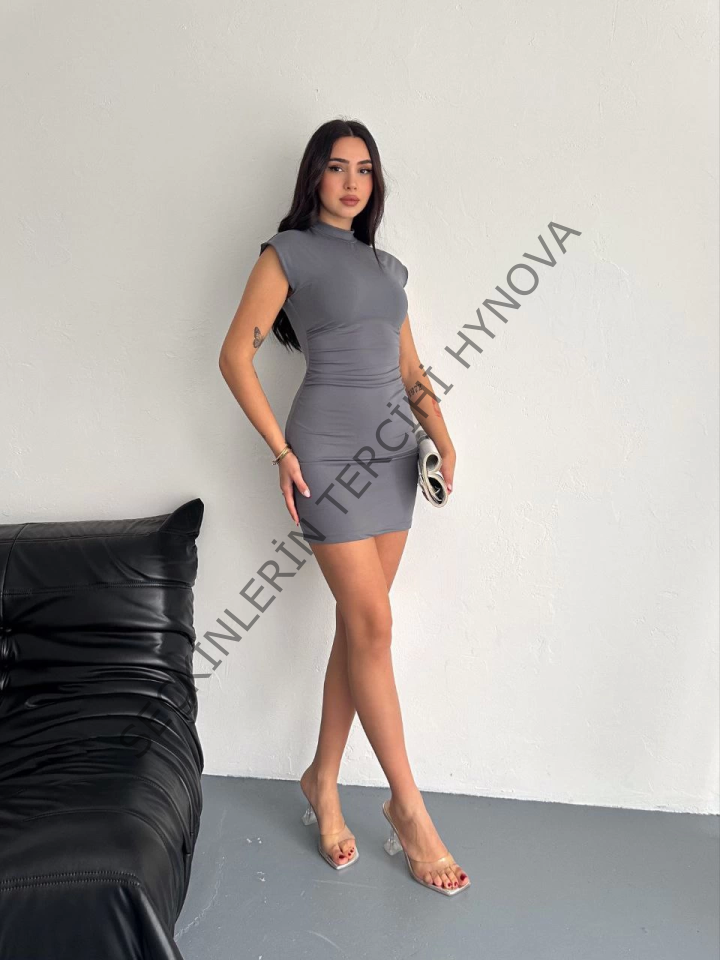 Yarım Bogazlı Kolsuz Mini Boy Elbise - Gri