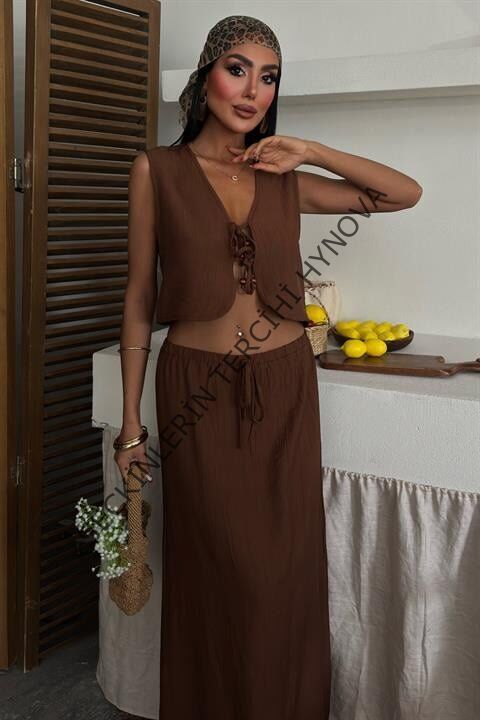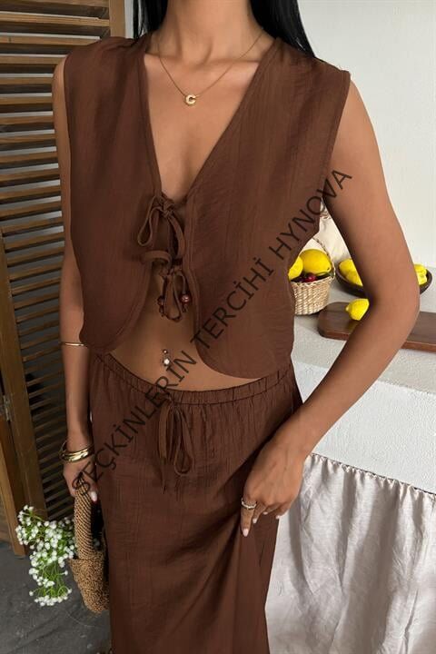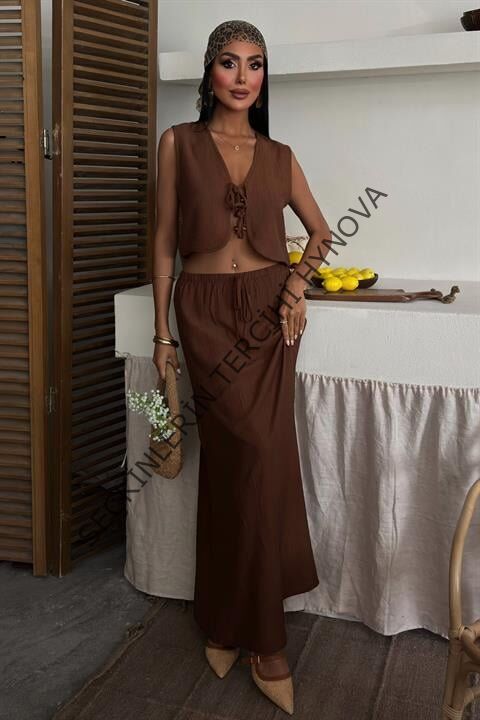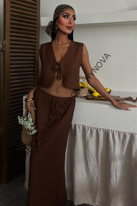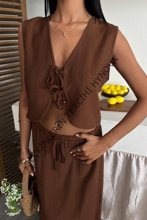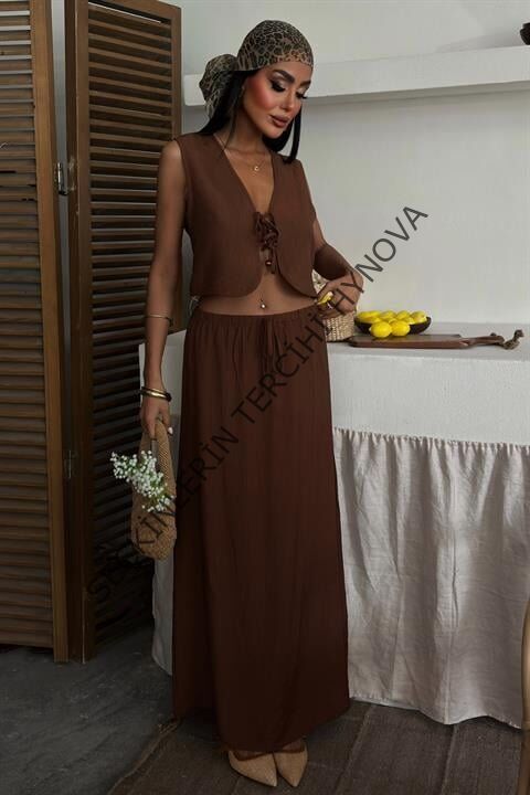 Yelek Önden Bağlamalı Uzun Etekli Takım 10192
