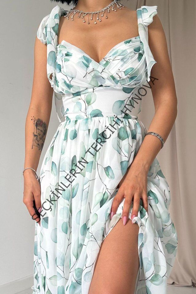 Yeşil Şifon Drapeli Elbise