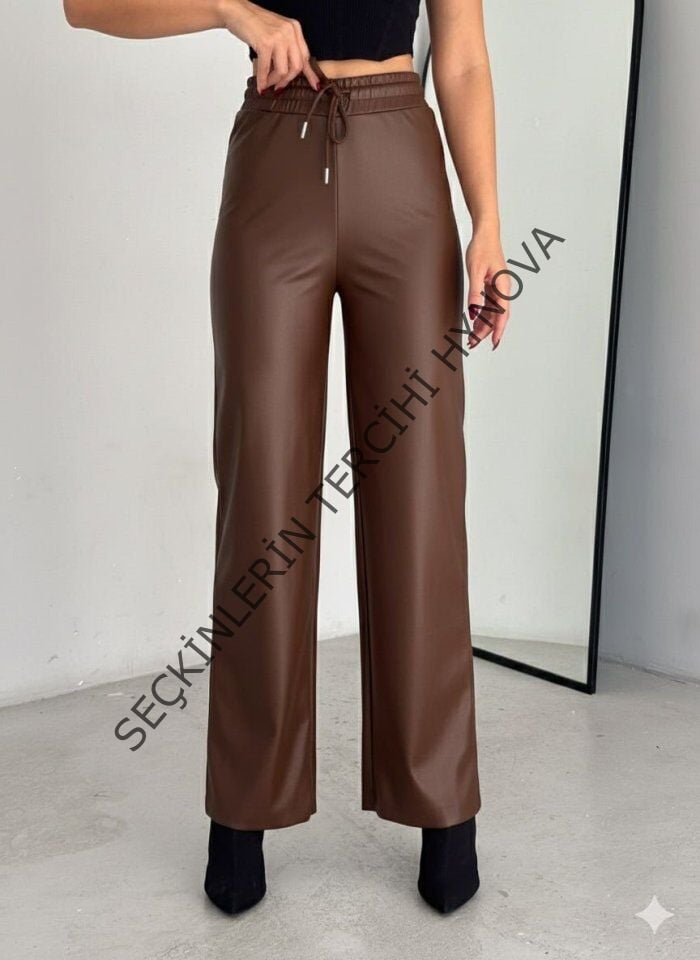 Yüksek Bel Geniş Paça Içi şardonlu Deri Pantolon.
