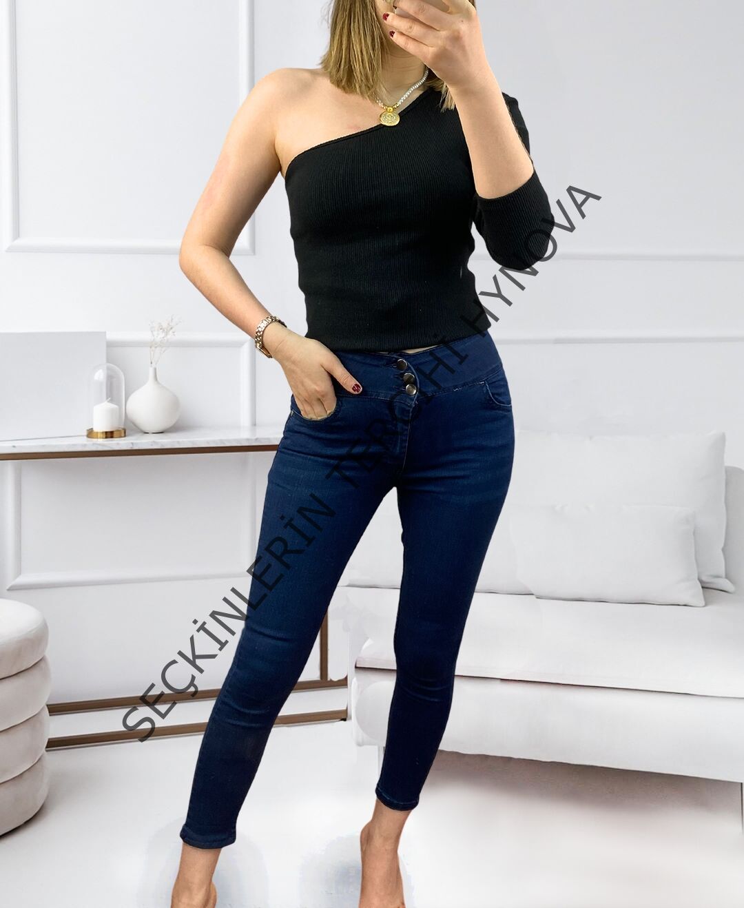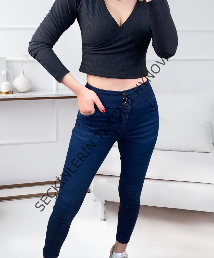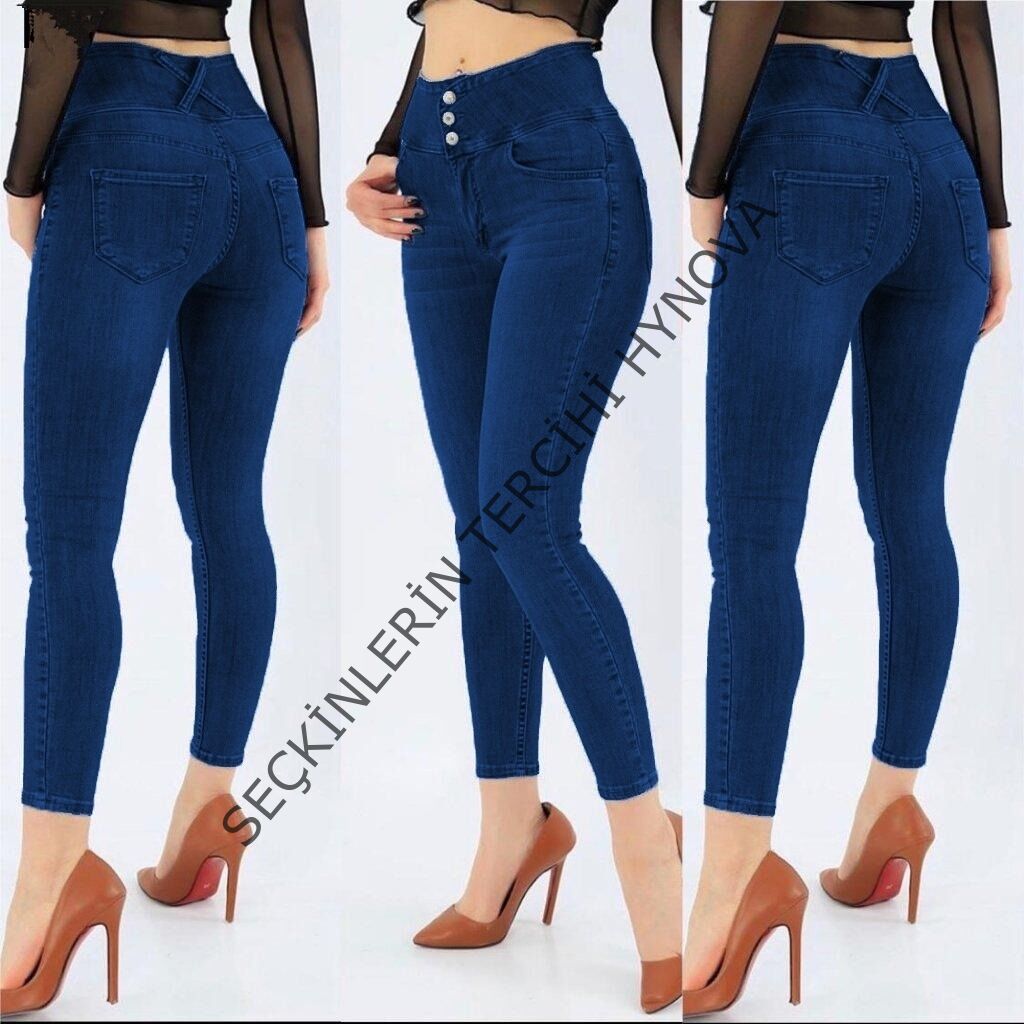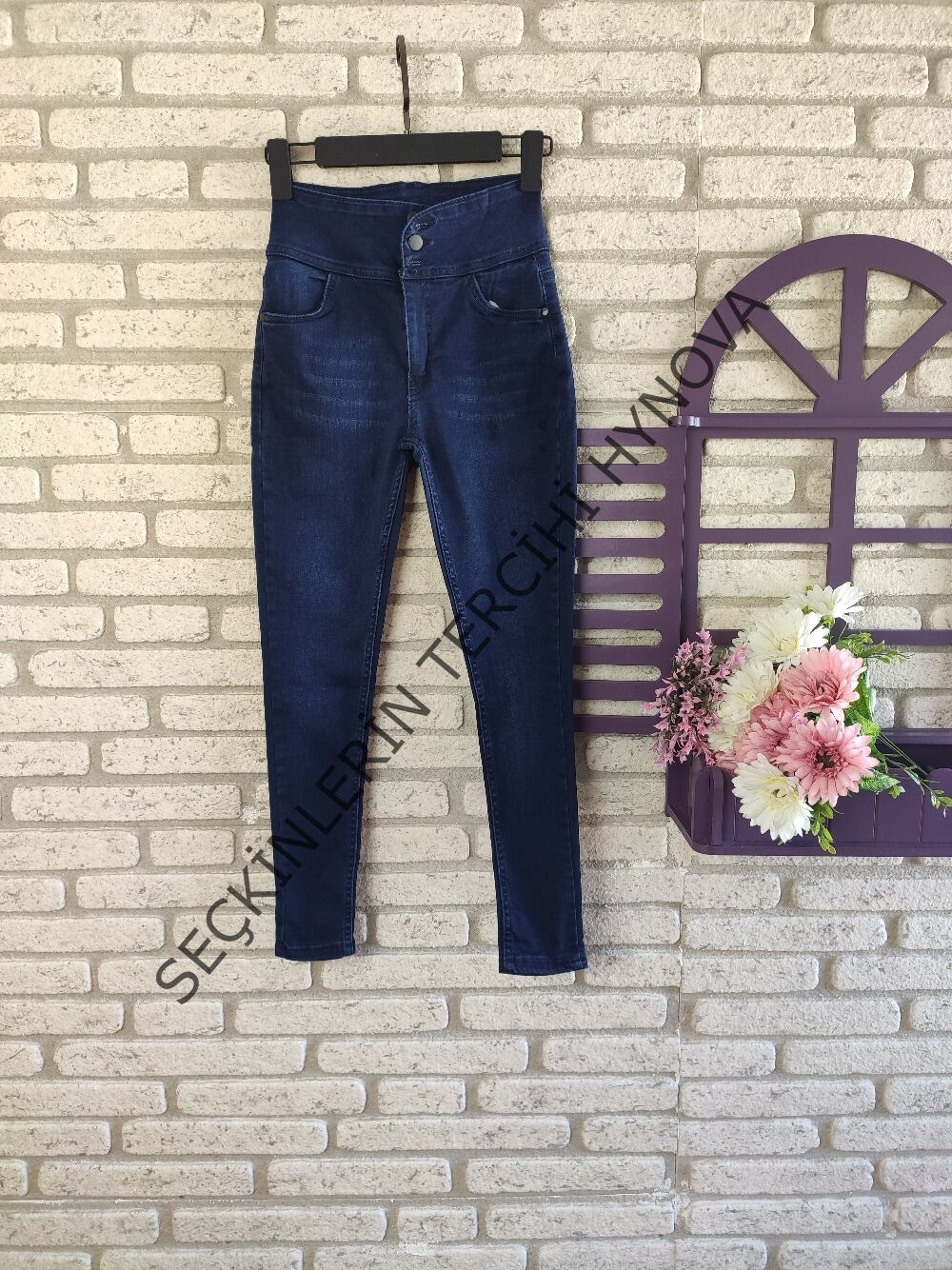 Yüksek Bel Likralı Jean Pantolon 90 Cm