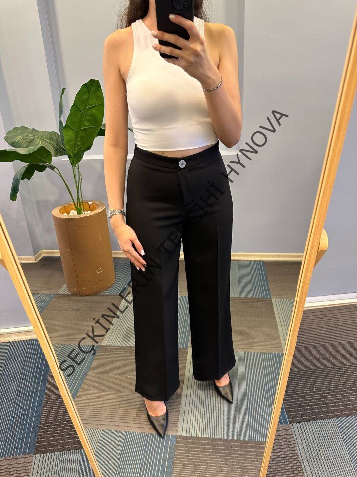 Yüksek Bel Palazzo Metal DüğmePantolon