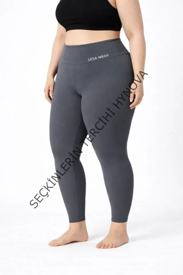 Yüksek Bel Toparlayıcı Likralı Dalgıç Spor Tayt Esnek Battal Büyük Beden - Füme